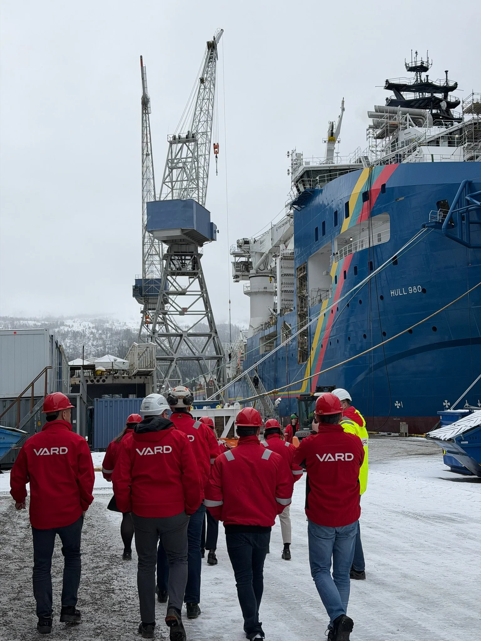 Akkurat nå pågår det storstilt arbeid ved Vard Langsten, med ferdigstilling av kabel- og konstruksjonsfartøyet som skal overleveres til japanske Toyo Construction om litt over 100 dager. At skipsverftene våre er internasjonalt konkurransedyktige så vi tydelig i Verdiskapingsrapporten vår som ble sluppet tidligere i februar. Målt i størrelse og kompleksitet er nesten 56 prosent av skipene som leveres i 2025 bestilt av utenlandske eiere. At man bygger til en japansk kunde er likevel noe unikt, så vidt oss bekjent. Tenk for et marked dette kan bli!