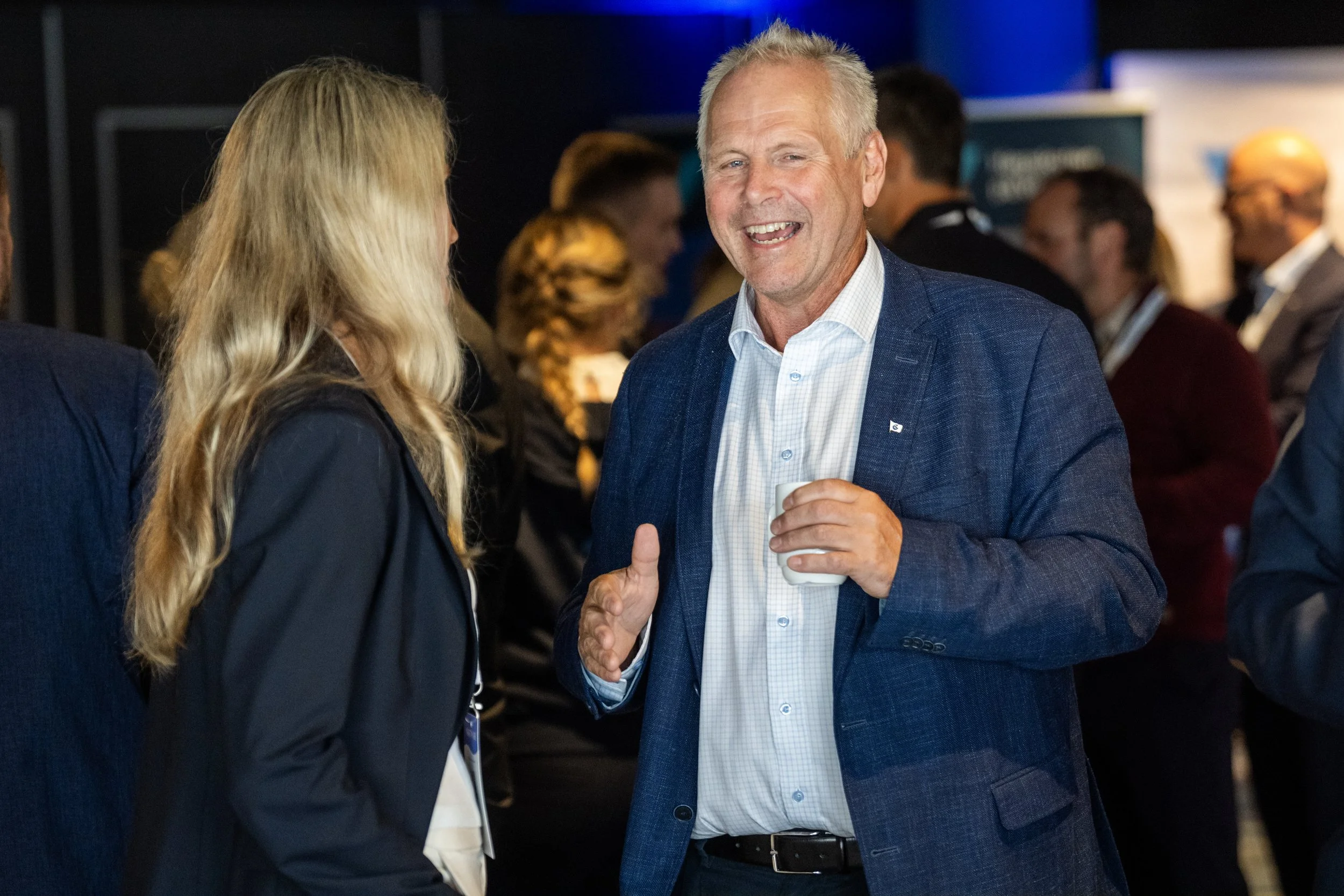 Thomas Wiig fra Østensjø Rederi i samtale med maritime ambassadører.