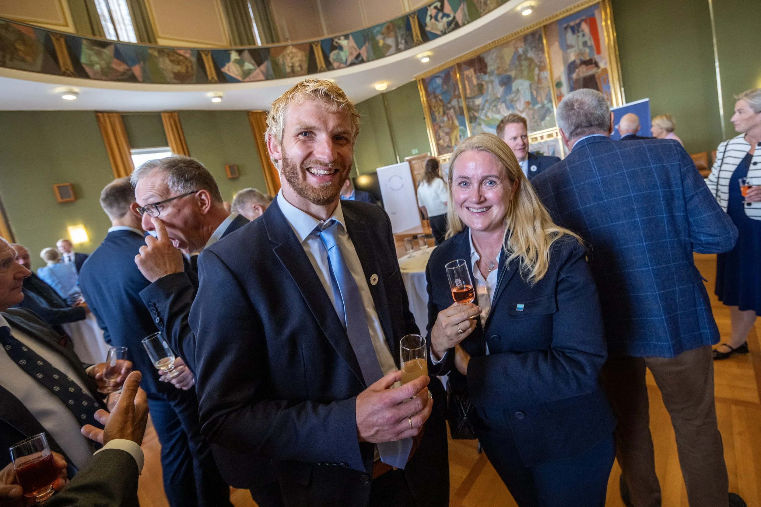 Fra mottakelsen i Haugesund Rådhus kvelden før Haugesundkonferansen. VP Regional Manager i DNV, Tuva Kristine Flagstad-Andersen, skadet foten i Haugesund, men stilte på både mottakelse og som innleder på Haugesundkonferansen likevel.