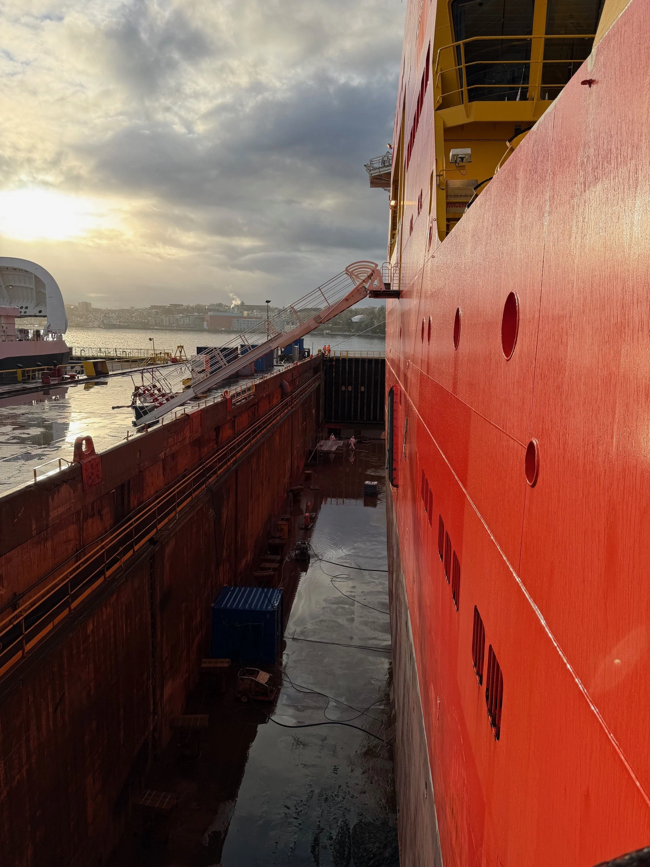 Da Maritimt Forum for Stavangerregionen var på besøk, var det hele 3 skip innom. Ei ferje for noe lettere vedlikeholdsarbeid, og ett offshoreskip som skulle klasses og ett fra Forsvaret som gjennomgikk årlig vedlikehold (VBK).