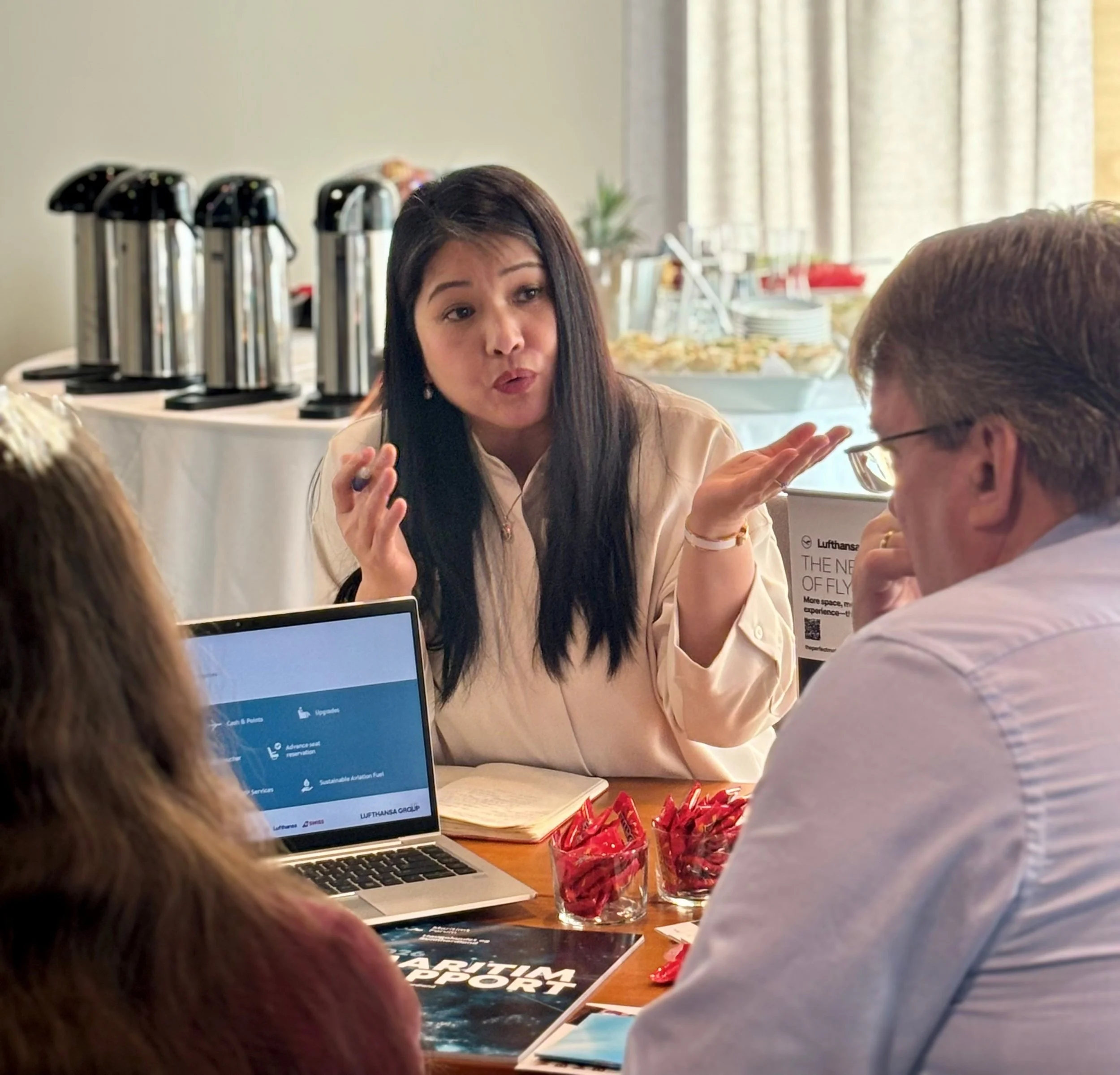 Hun var “pytt i panne” med arrangementet hvor maritime bedrifter fikk møte store flyselskaper som Emirates, LOT Polish Airlines, TAP Air Portugal, Turkish Airlines, Lufthansa, KLM og IAS for å høre om tilbud og diskutere løsninger i forbindelse med personellreiser.