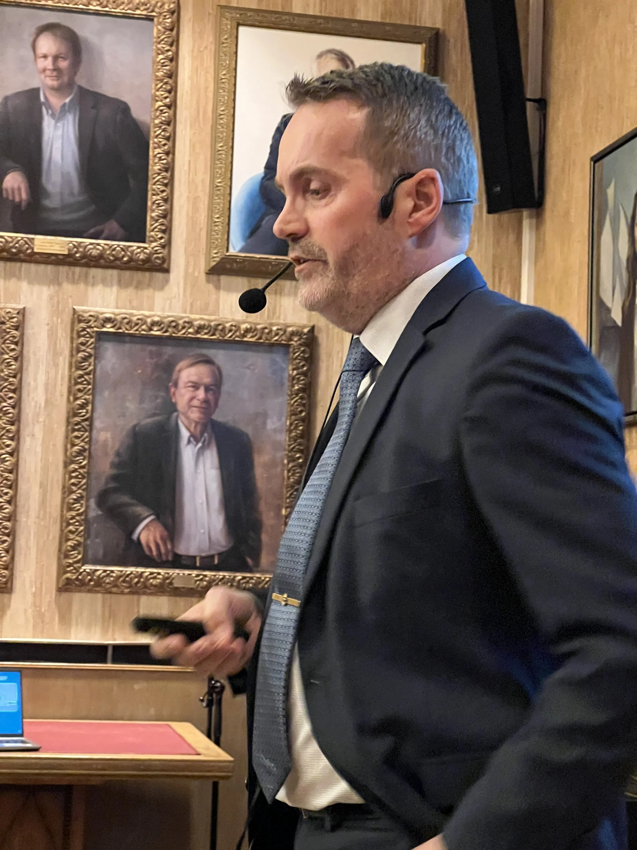 Sigmund Simonsen på talerstolen i Haugesund Rederiforening.