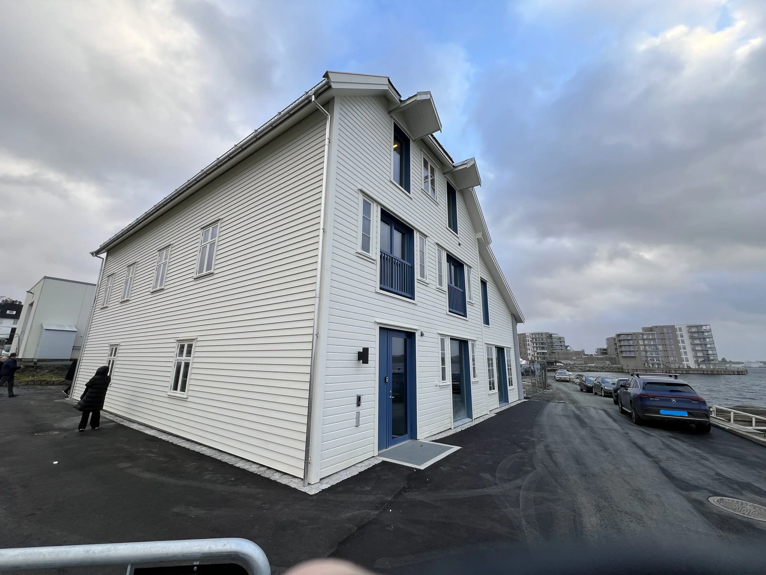 Tveitahuset med fasade mot Karmsundet slik det fremstår i dag.