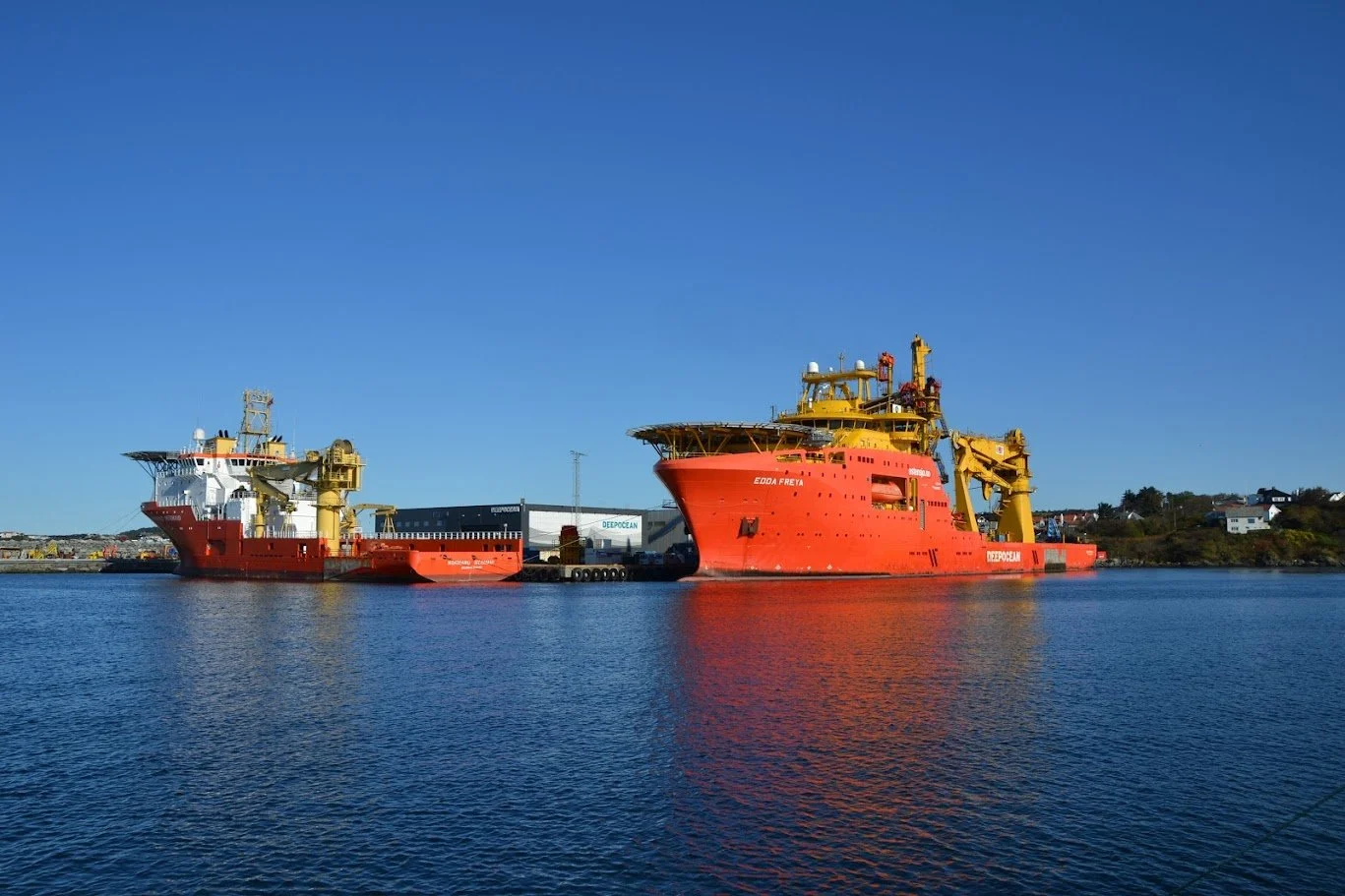 Solstads “Normand Mermaid” og Østensjøs “Edda Freya” på Killingøy i 2019.