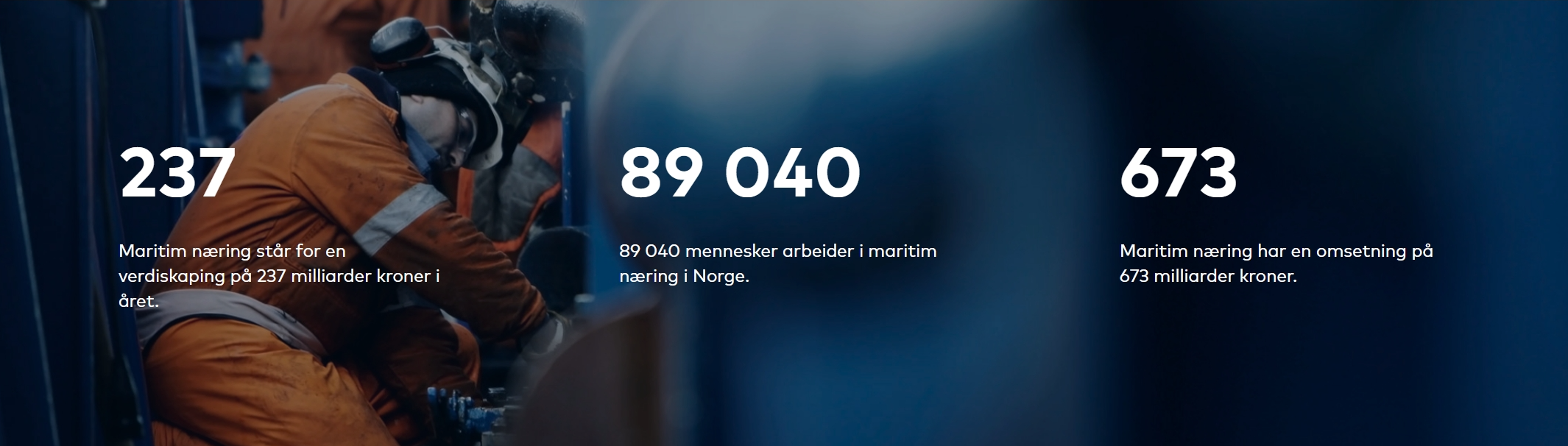 Den maritime næringen er blant Norges viktigste næringer og har stor betydning for verdiskaping og sysselsetting i store deler av landet. I 2025 omsatte næringen for 673 milliarder kroner, bidro med 237 milliarder kroner i verdiskaping og sysselsatte over 89 000 personer. Den samlede eksporten fra maritim næring er i 2025 beregnet til 369 milliarder kroner.