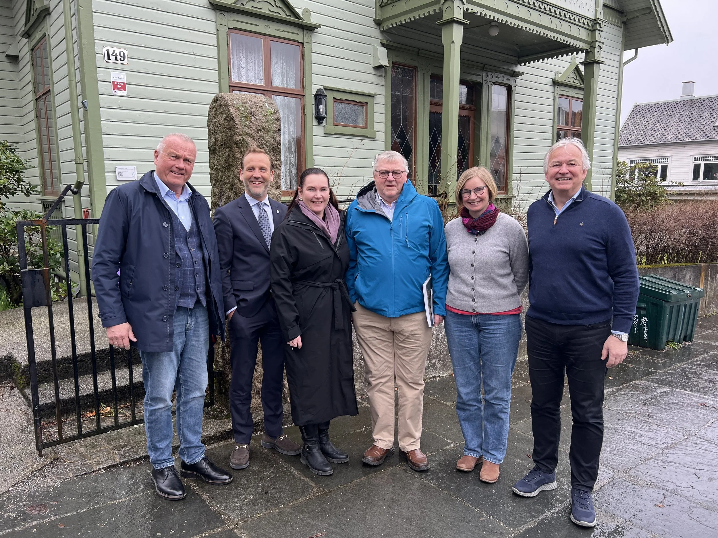 F.v. Daglig leder Sverre Meling i Maritimt Forum, ordfører i Haugesund, Nils Konrad Bua, stortingsrepresentant Monica Molvær, Teis Kvilhaug i Karmøy Høyre, prosjektansvarlig for maritimt vitenmuseum i Haugalandmuseet, Grethe Paulsen Vie og museumsdirektør Mads Ramstad.