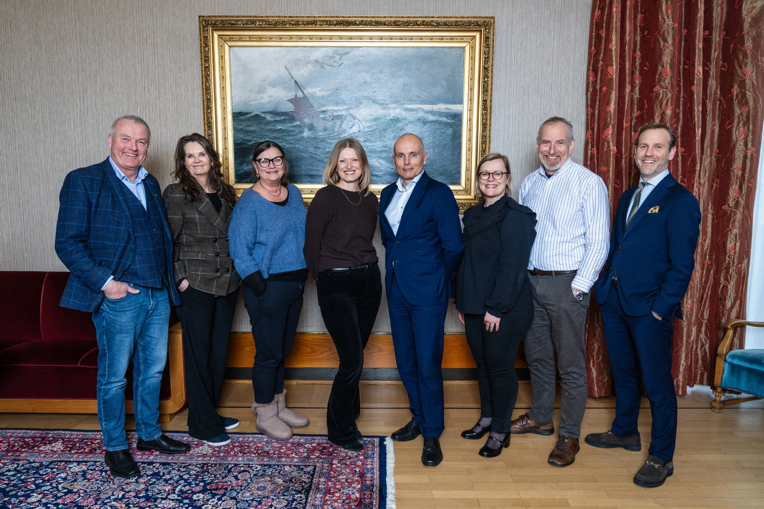 Styret i Maritimt Forum for Haugalandet og Sunnhordland med daglig leder Sverre Meling t.v. Deretter Helga Cotgrove, Ruth Eriksen, Kristine Skeie, Runar Skarstein, Jorunn Steensnæs, Øystein Matre og Nils Konrad Bua. Håkons Sandvold og Gunnar Amland var ikke til stede da bildet ble tatt. Foto Maritimt Forum/Grethe Nygaard.