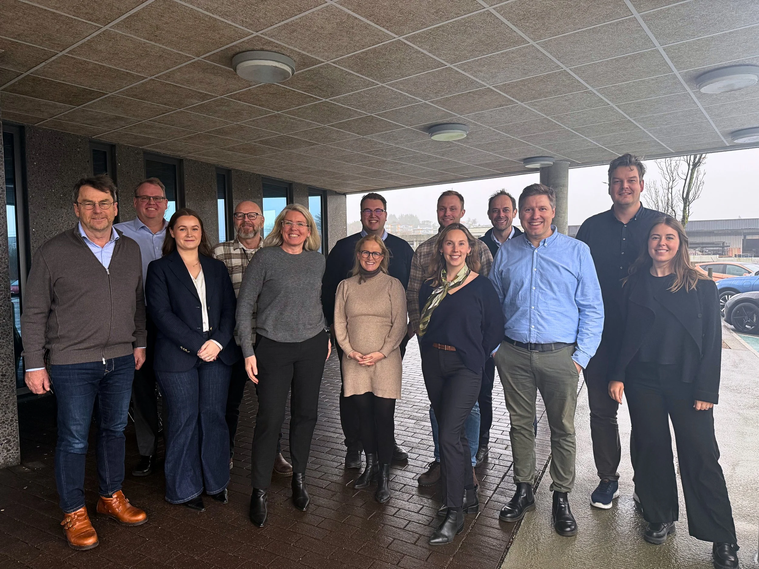 Deltakerne på oppstartsmøtet. Karoline Sjøen Andersen t.v. for Bjarte Børtveit (i blå skjorte). Foto Haugaland Næringspark.