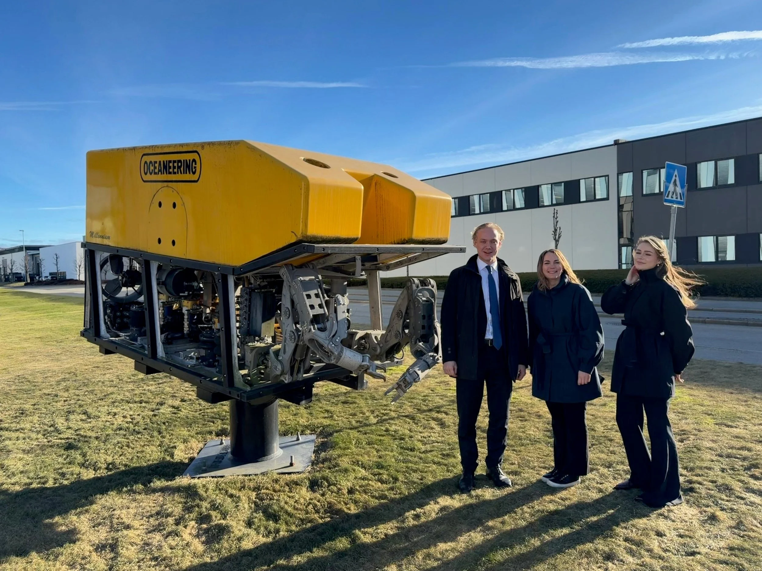 Simen Velle fra Stortinget, og Hayley Anita Henriksen og Kristin Lode fra fylkestinget, besøkte Oceaneering